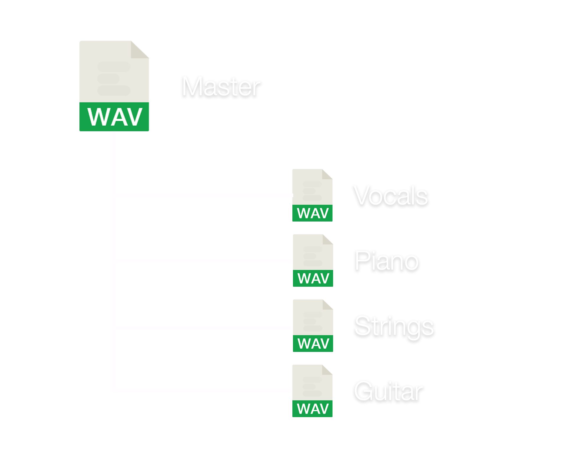The instrumental audio stem file will contain everything except the vocals. This stem is ideal for use as a karaoke or instrumental version of a song.